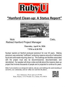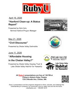All Ruby U presentations are free at 7:00 at Chelan’s Historic Ruby Theatre